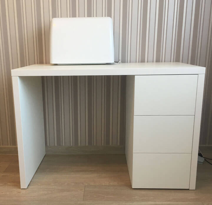 ПосмотретьМебель без ручек, цвет белый премиум (МДФ), открытие фасадов дверей и выдвижных ящиков стола нажатием (push to...